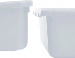 Hladký bílý plast s zaoblenými rohy je lehký, pevný a snadno se udržuje. Misky lze při skladování zasouvat do sebe a šetřit místo.