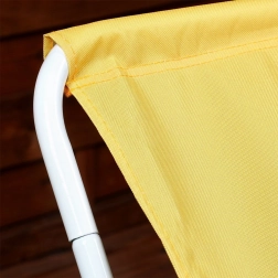 Odolná polyesterová tkanina v odstínech žluté je příjemná na dotek a umožňuje pohodlný relax na pláži i na zahradě.