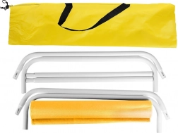Díky skládací konstrukci ho snadno složíte i rozložíte během chvilky. Včetně přepravní tašky s popruhem pro pohodlné nošení; taška se složeným lehátkem má rozměr 60 × 18 × 8 cm. Lehátko je skvělou volbou pro pláž, terasu, balkon, zahradu i výlety k vodě nebo piknik.
