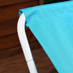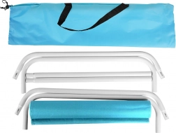 Lehátko je navrženo pro pohodlný odpočinek v exteriéru. Odolný bílý kovový rám a pevná polyesterová tkanina v modré barvě zajišťují stabilitu a příjemné posezení v nízké relaxační poloze. Díky chytrému skládacímu mechanismu ho snadno sbalíte do přiložené tašky a vezmete s sebou na pláž, piknik nebo dovolenou.