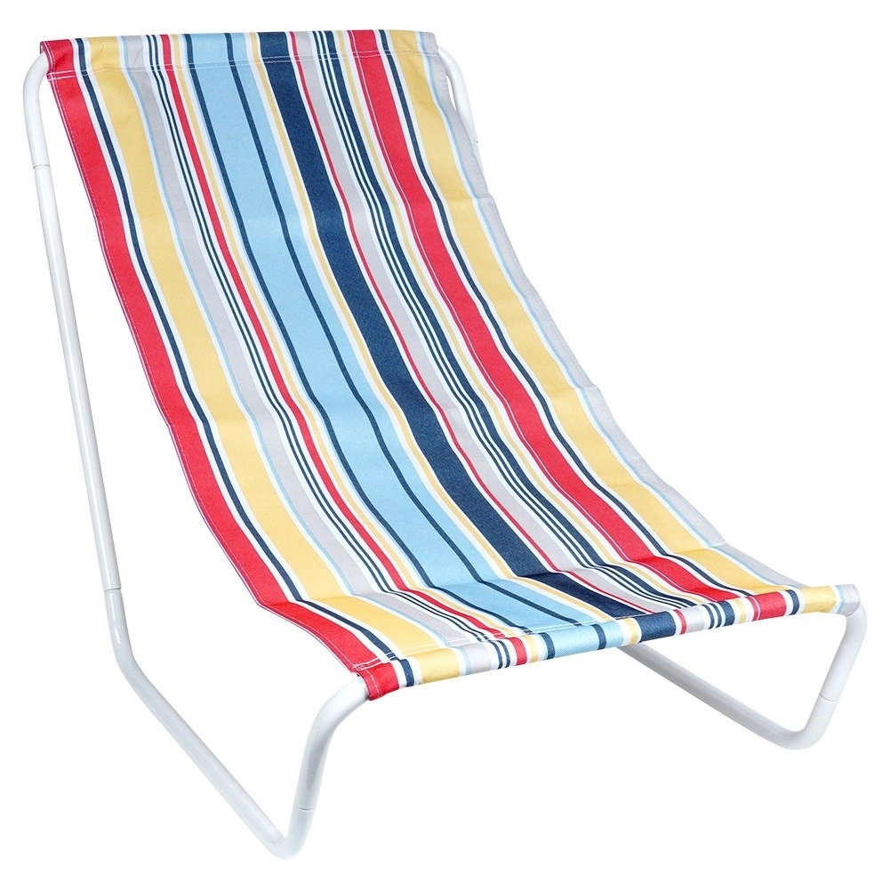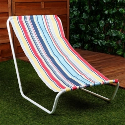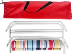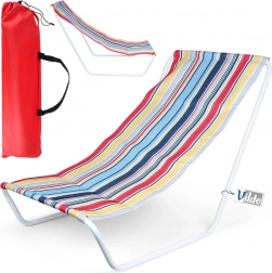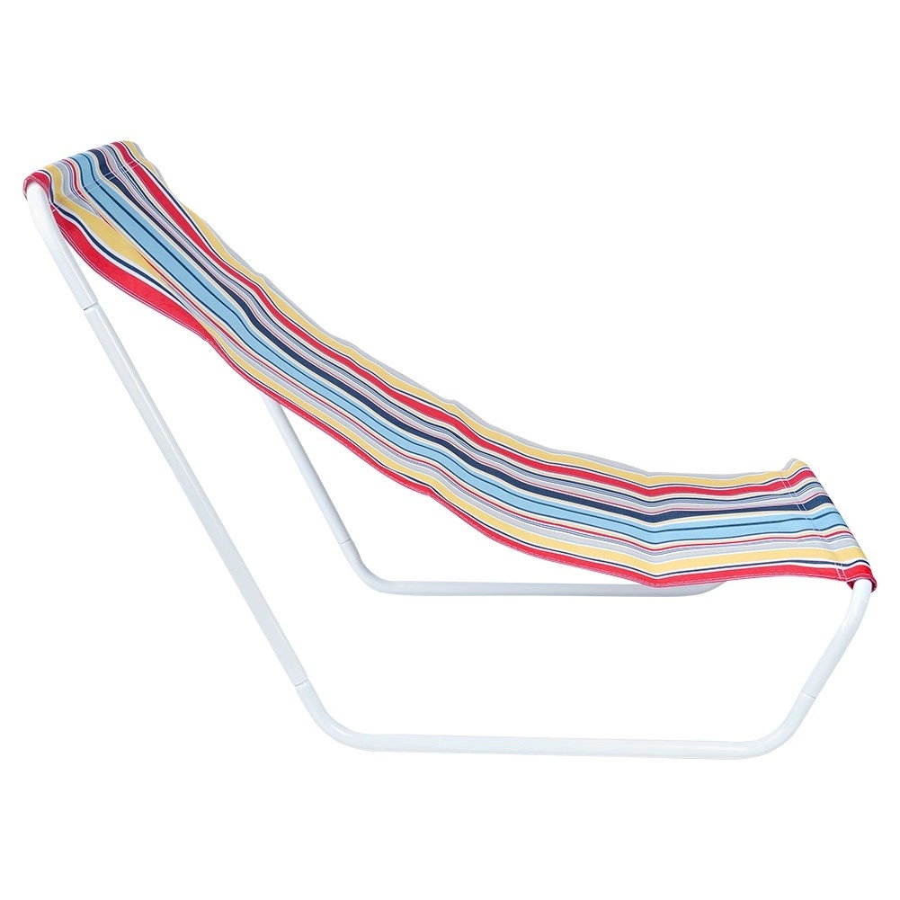 Stylové skládací plážové lehátko v pestrobarevných pruzích je skvělé pro zahradu, terasu, balkon i pláž. Robustní, přitom lehký bílý kovový rám a odolná polyesterová textilie zajišťují stabilitu a pohodlí při odpočinku. Díky nízkému posedu je ideální pro opalování a relax u vody.