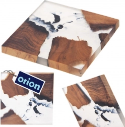 Čtvercová podložka z akáciového dřeva s vložkou z bílé pryskyřice v efektním „river“ stylu je praktický i dekorativní doplněk do kuchyně i obývacího pokoje. Díky hladkému povrchu a pevné tloušťce spolehlivě chrání desky stolů před teplem z horkých nápojů i vlhkostí z vychlazených sklenic.