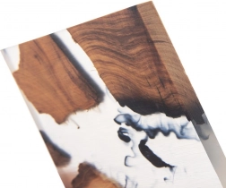 - Stylový vzhled: kombinace přírodního dřeva a pryskyřice pro moderní interiéry.