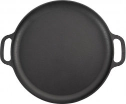 Robustní litinová pánev o průměru 35 cm s dvěma úchyty pro bezpečné přenášení. Nabízí rovnoměrné rozložení tepla, vysokou tepelnou odolnost a univerzální použití na sporáku, grilu i v troubě. Ideální pro smažení, pečení a dušení masa, zeleniny i brambor.