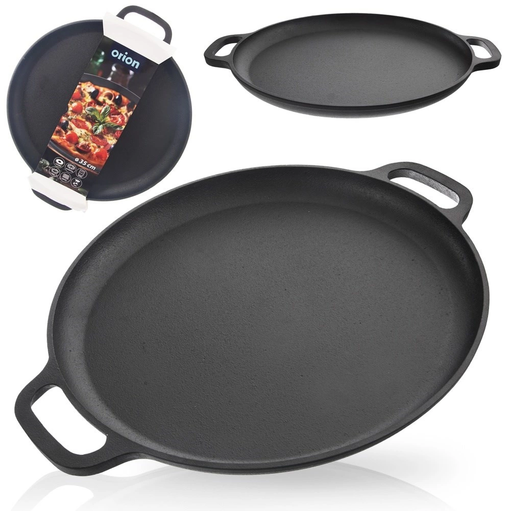 Objevte sílu litiny pro každodenní vaření. Tato pánev s průměrem 35 cm a nízkým okrajem (cca 3 cm) je perfektní pro přípravu pizzy, steaků, zeleniny i pečených brambor. Masivní litinové tělo zajišťuje dlouhou akumulaci tepla a rovnoměrné propečení bez horkých míst.