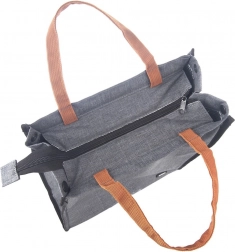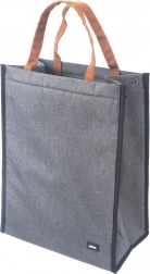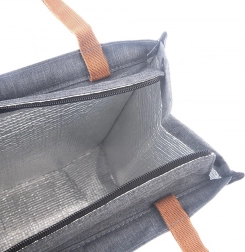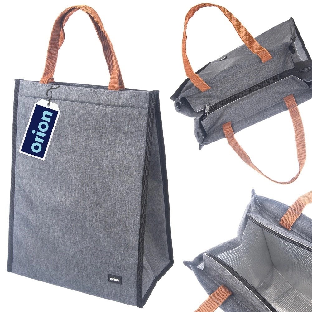 Tato stylová termo taška o objemu 14 litrů spolehlivě udrží chladné i teplé pokrmy díky kvalitní termoizolaci. Robustní šedý polyester je odolný vůči opotřebení, hnědá ucha příjemně sedí v ruce a zip po celé délce usnadňuje přístup k obsahu. Praktická zadní zipová kapsa pojme drobnosti, klíče či ubrousky.