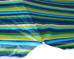 - Polyester, voděodolný, modro‑zelené pruhy, stříbrná UV vrstva