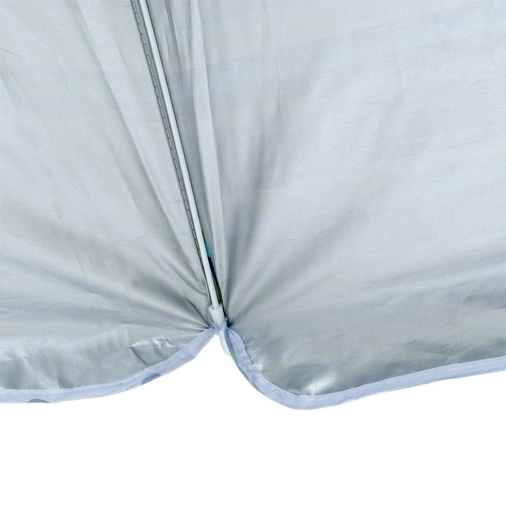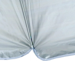 - Účinná ochrana: stříbrná povrchová úprava tkaniny odráží škodlivé UV paprsky, materiál je voděodolný.
