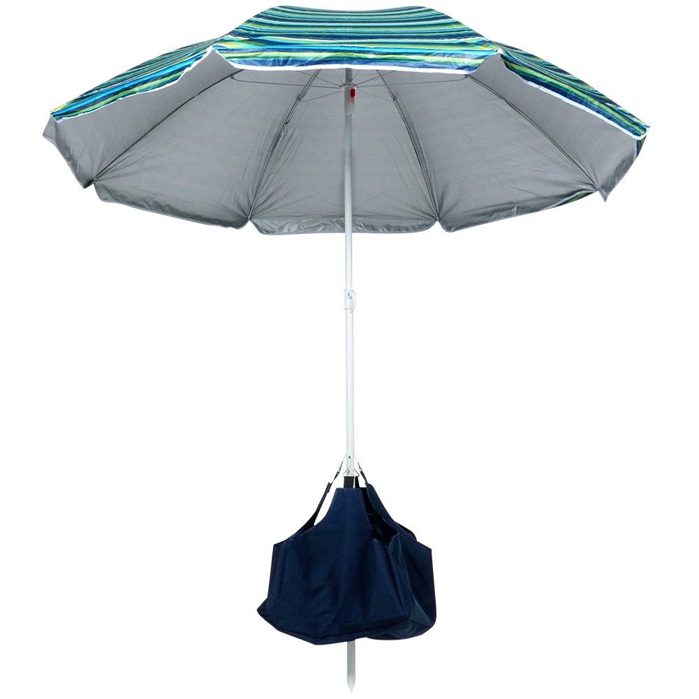 Součástí je odolný vak na písek, který po naplnění slouží jako základna a drží slunečník stabilně i ve větru.