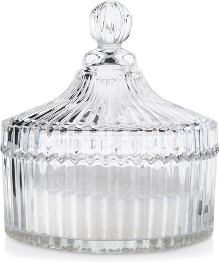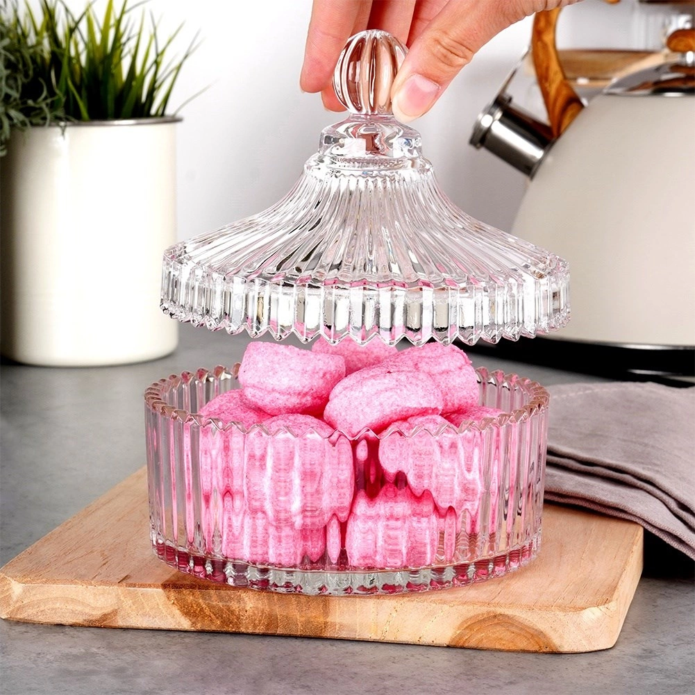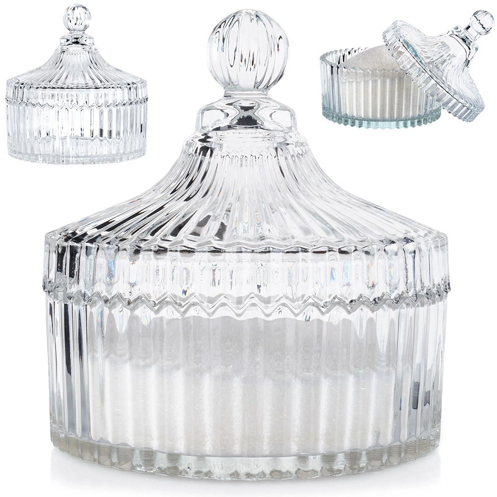 Tato vysoce kvalitní skleněná cukřenka přináší spojení praktičnosti a stylu. Díky zdobení, které připomíná krystal, se stane elegantním doplňkem každé jídelní soupravy. Praktické víčko s kulatým knopem chrání obsah před prachem a umožňuje pohodlné používání.