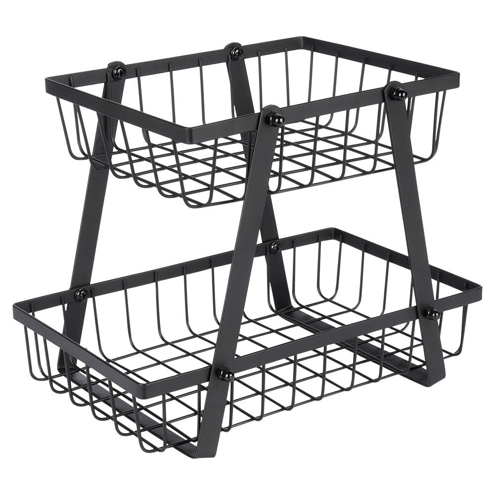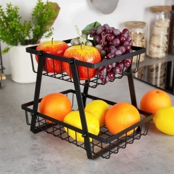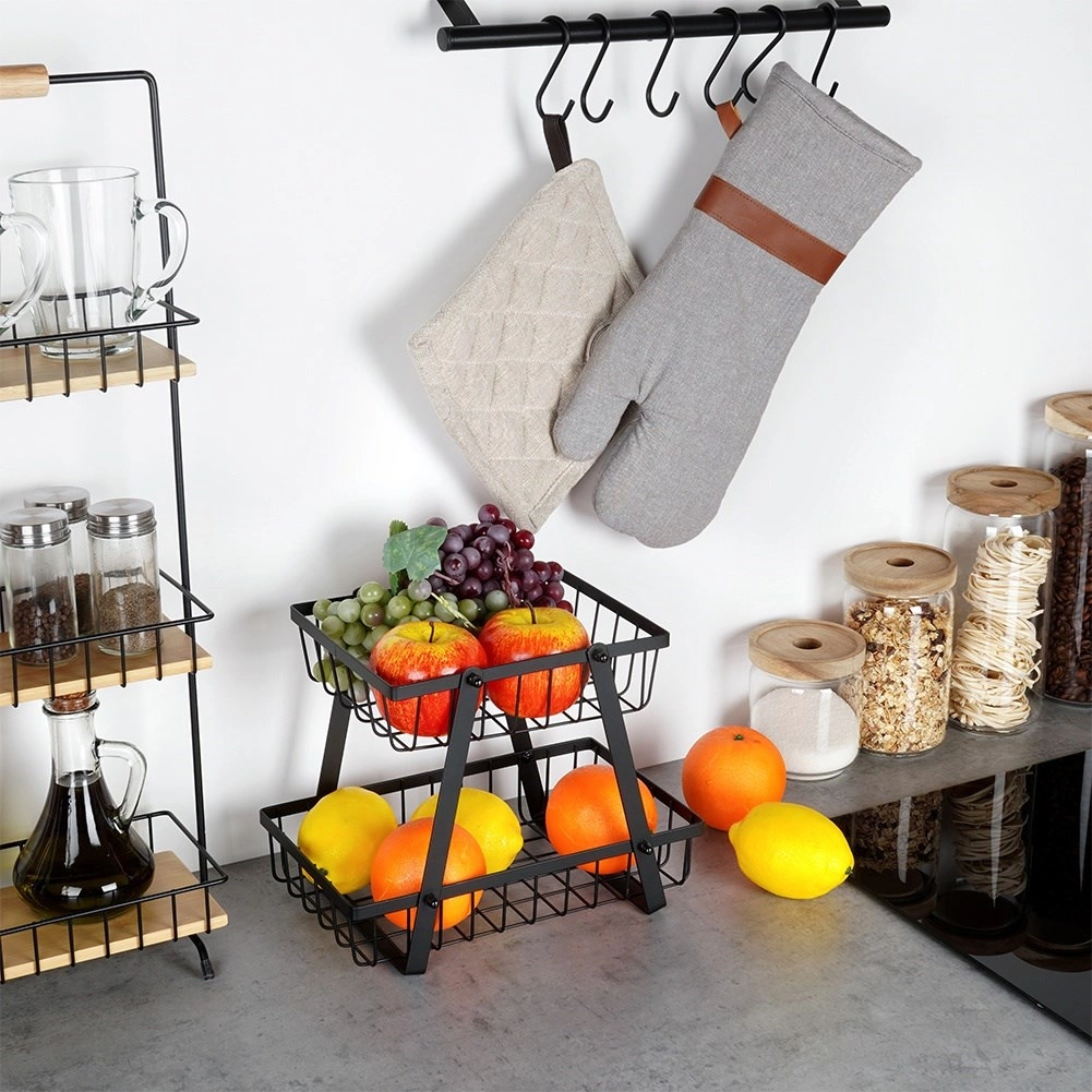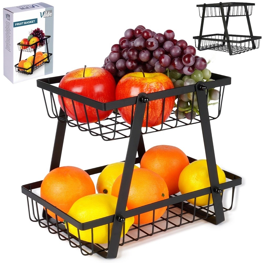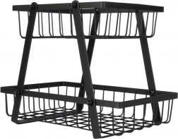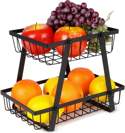 Stylový a praktický pomocník do každé kuchyně: dvouúrovňový stojan s drátěnými košíky v industriálním stylu loft ušetří místo a zároveň krásně vystaví vaše ovoce i zeleninu. Otevřené stěny podporují proudění vzduchu, takže plody zůstávají déle čerstvé a na očích.