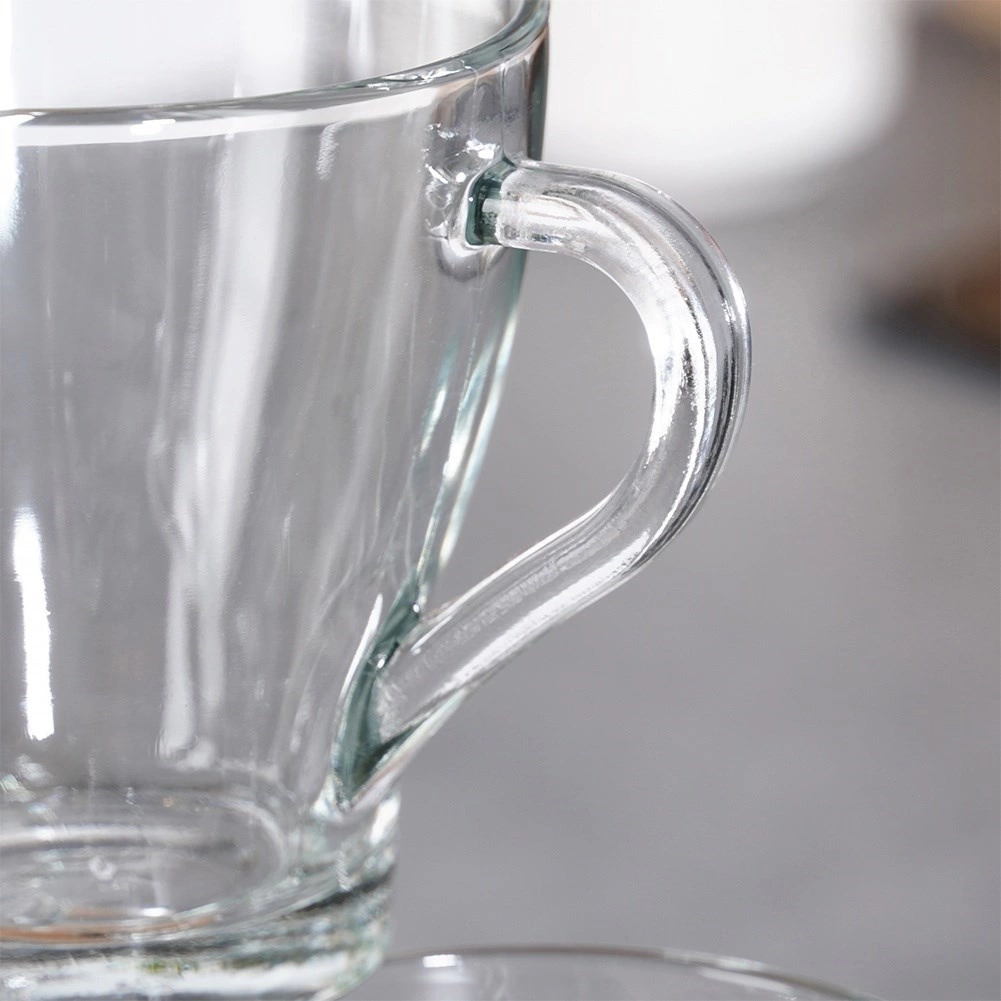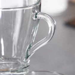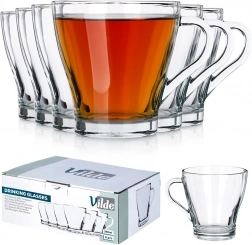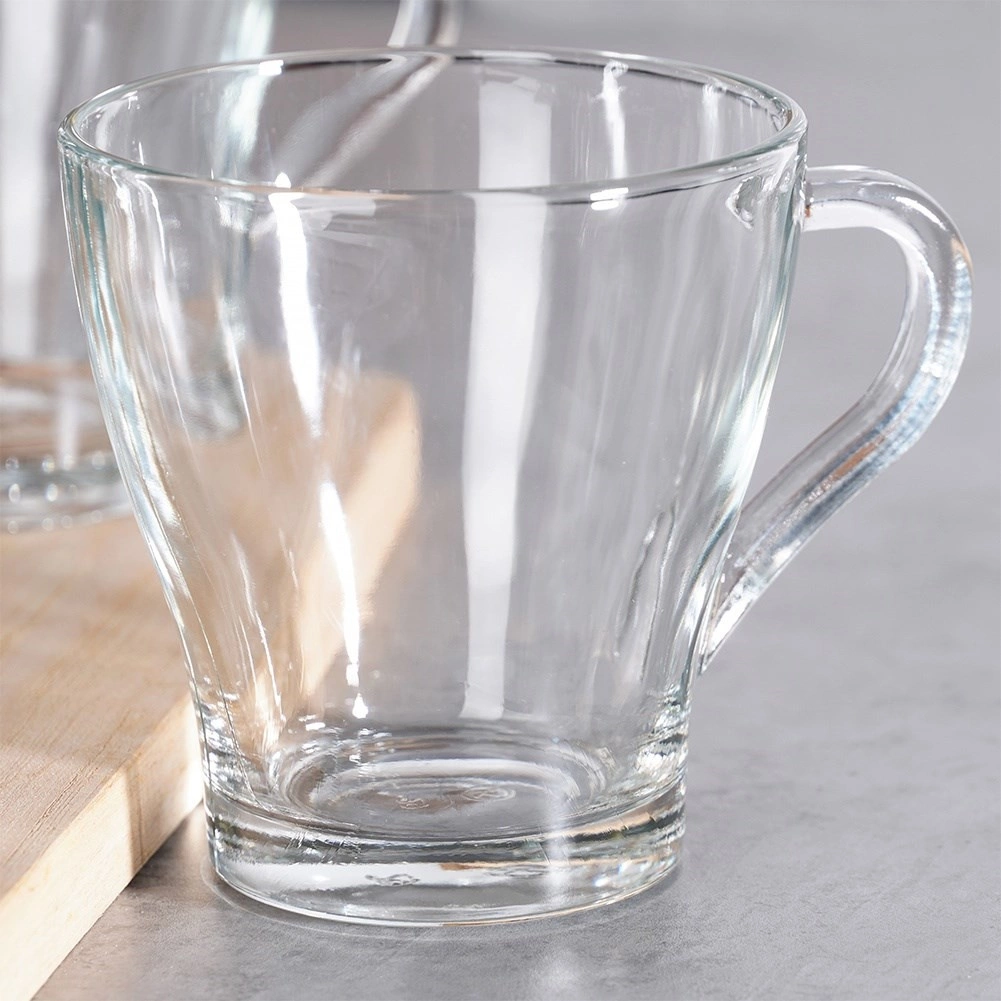 Elegantní sada 6 sklenic s uchem o objemu 250 ml pro každodenní použití i speciální příležitosti. Vyrobeny z kvalitního silného skla, vhodné pro horké i studené nápoje, s ergonomickým uchem pro bezpečný úchop. Sklenice jsou průhledné pro efektní servírování a snadno se udržují – vhodné do myčky i mikrovlnné trouby.