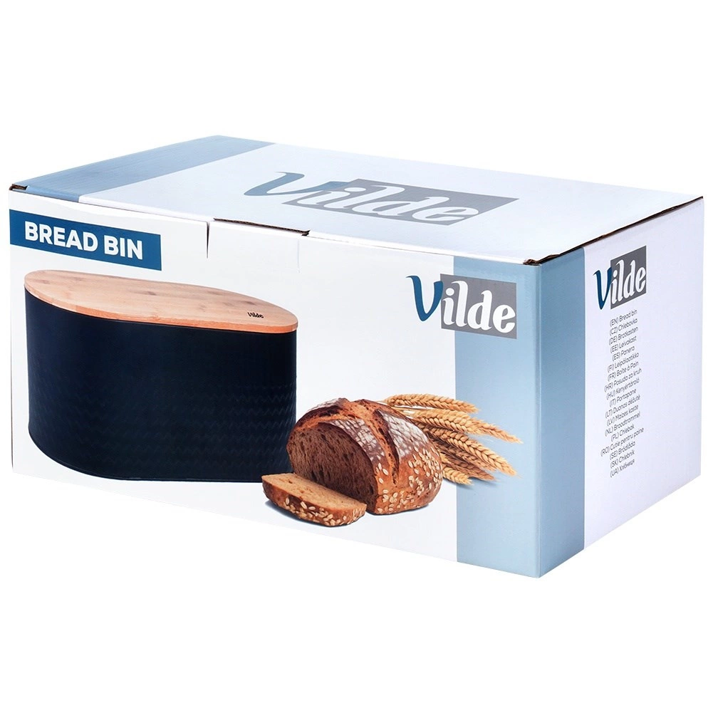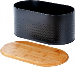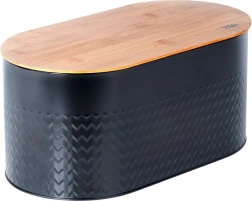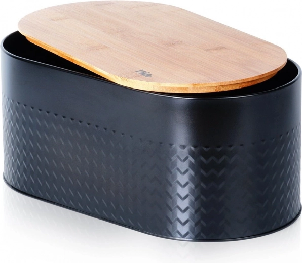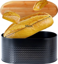 Stylový černý chlebník z odolné oceli s víkem z přírodního dřeva, které zároveň slouží jako prkénko na krájení. Udrží pečivo déle čerstvé, chrání ho před vysycháním i zmačkáním a elegantně doplní každou kuchyň. Oválný tvar a rozměry 34 × 18,5 × 15,5 cm nabízí dostatek prostoru pro chléb, housky i pečivo všeho druhu.