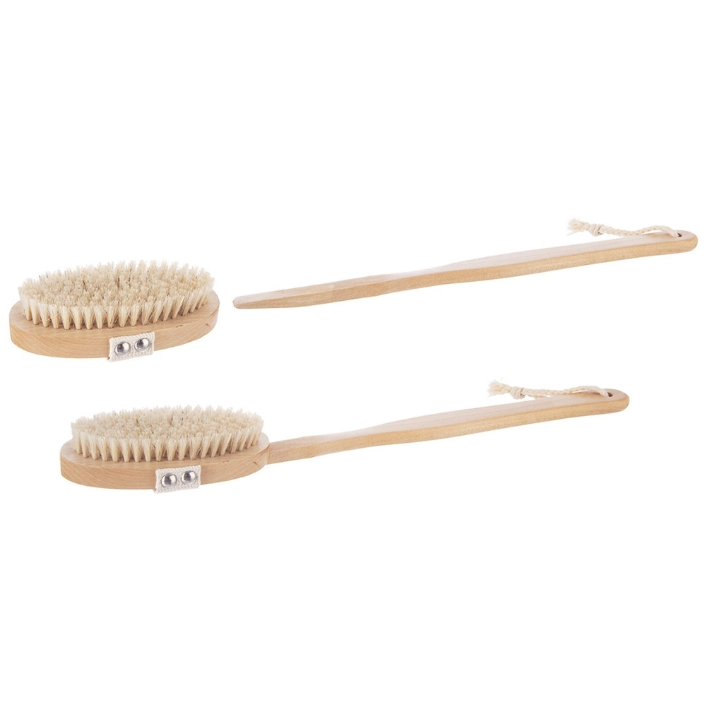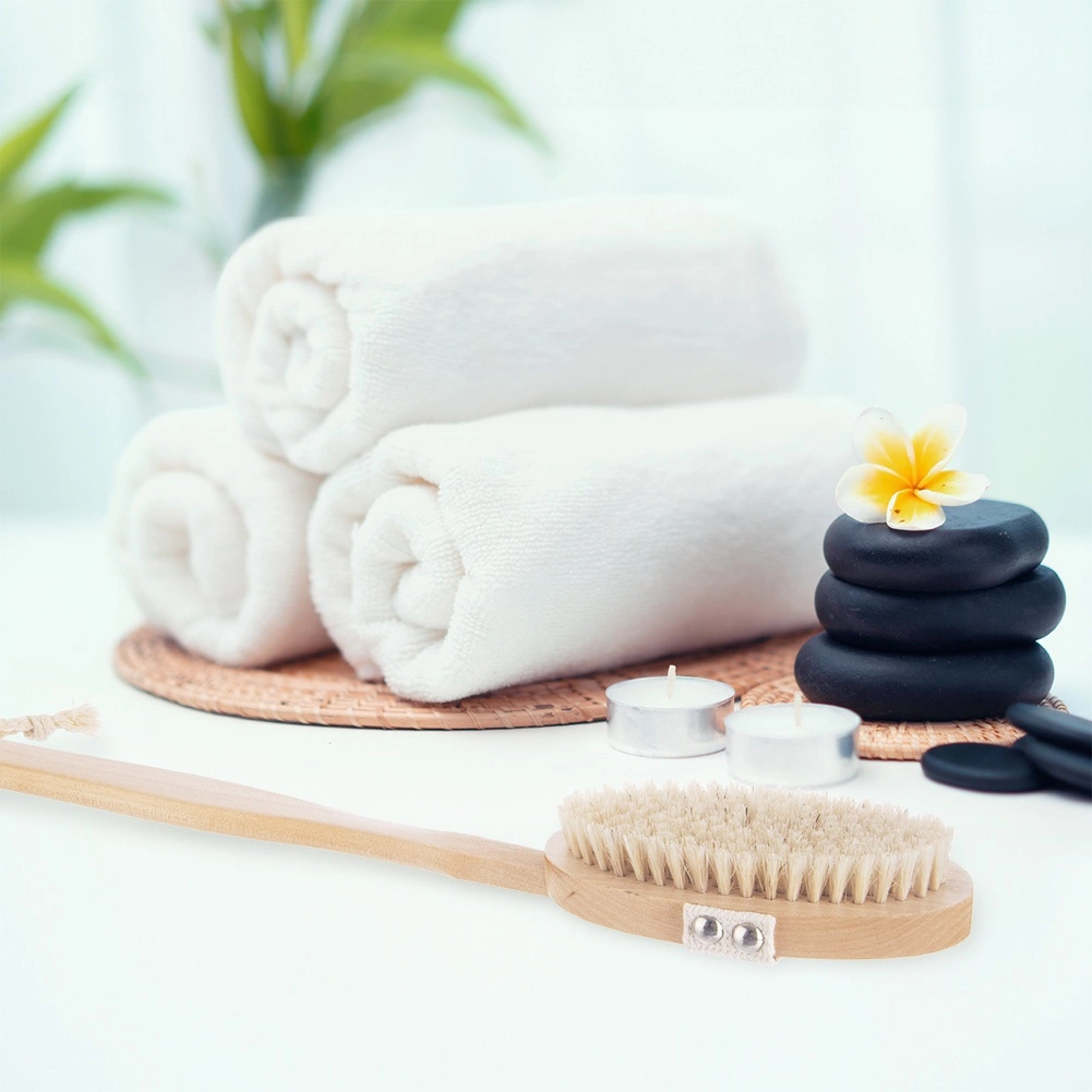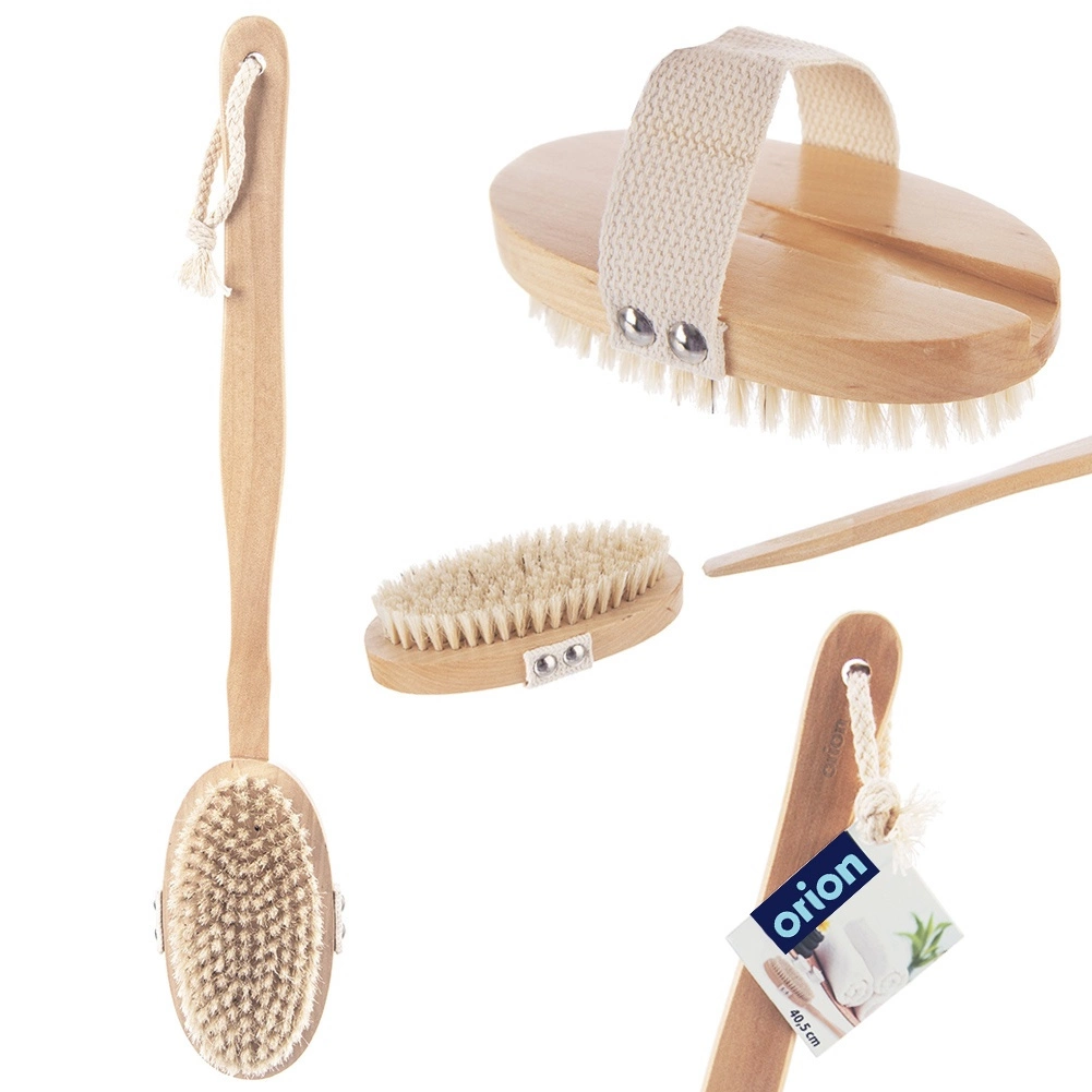 Objevte praktický dřevěný masážní kartáč 2v1 s odnímatelnou dlouhou rukojetí pro suché kartáčování i použití ve sprše či vaně. Husté štětiny šetrně, ale účinně odstraňují odumřelé buňky, podporují mikrocirkulaci a zanechají pokožku hladkou a svěží. Přirozené materiály, pohodlný bavlněný pásek a závěsné očko pro snadné sušení.