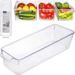Praktický průhledný organizér do lednice o rozměrech 32,5 × 10 × 7,5 cm pomůže udržet pořádek a maximálně využít prostor. Díky integrovanému úchytu se snadno vysouvá, je z odolného plastu a je bezpečný pro potraviny. Ideální pro přehledné uložení ovoce, zeleniny, sáčků a drobných balení.
