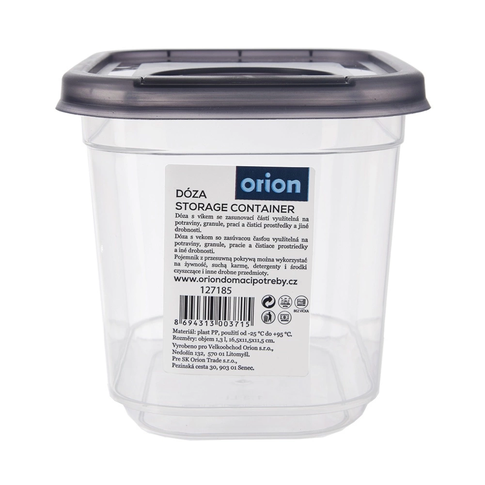 Praktický zásobník na sypké potraviny s integrovaným dávkovacím víčkem o objemu 1,3 l udrží vaše ingredience déle čerstvé a přehledně uložené. Díky průhlednému tělu máte obsah vždy pod kontrolou, zatímco těsnící víko a dávkovací otvor usnadní každodenní používání. Vyrobeno z BPA free plastu, vhodné do lednice, mrazáku i myčky a pro ohřev v mikrovlnné troubě bez víčka.