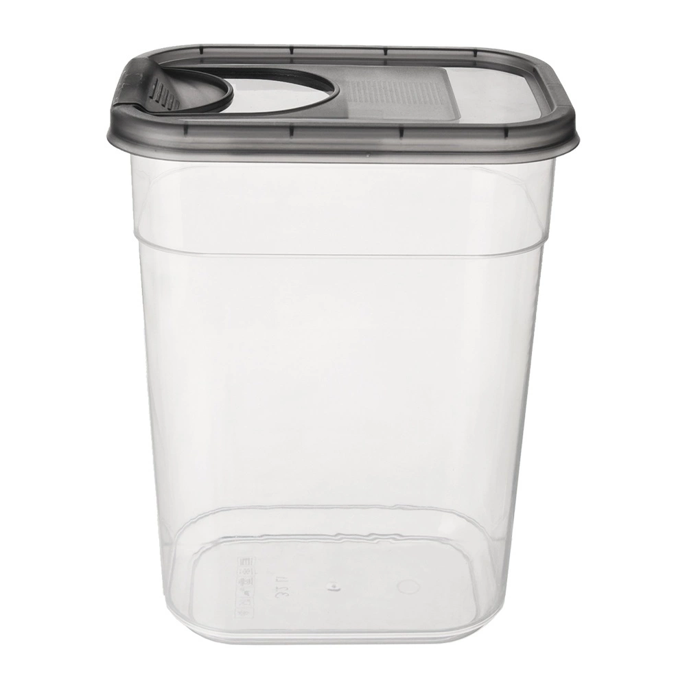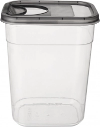 Tato dóza z řady Grey je ideální pro každodenní skladování potravin, jako jsou těstoviny, káva, müsli, ořechy, luštěniny nebo cereálie. Díky průhlednému provedení vždy okamžitě vidíte obsah a množství, zatímco těsnící víko s výklopným dávkovacím otvorem usnadňuje přesné sypání bez nepořádku.