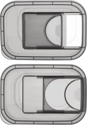 Integrované výklopné hrdlo ve víku umožní přesné a čisté sypání vloček, těstovin nebo granulí přímo do misky či hrnce.