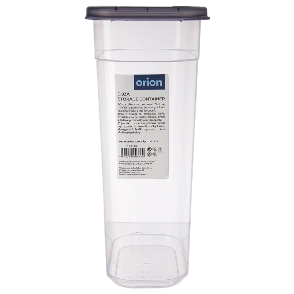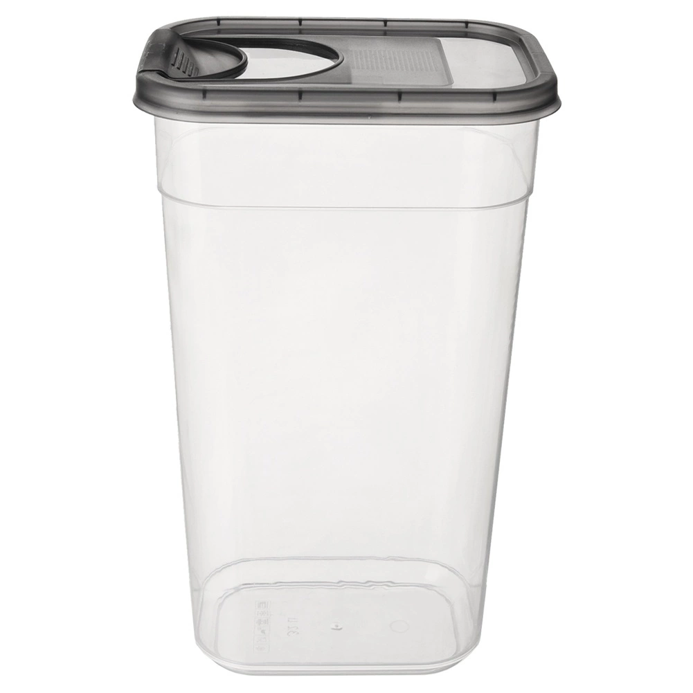 Praktická dóza o objemu 3,2 l s integrovaným dávkovačem zajistí vzduchotěsné uchování a pohodlné sypání sypkých potravin. Průhledné tělo pro rychlou kontrolu obsahu, kvalitní plast bez BPA, vhodná do lednice, mrazáku, mikrovlnky (bez víka) i myčky. Ideální na těstoviny, vločky, kávu, ořechy či krmivo pro mazlíčky.