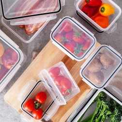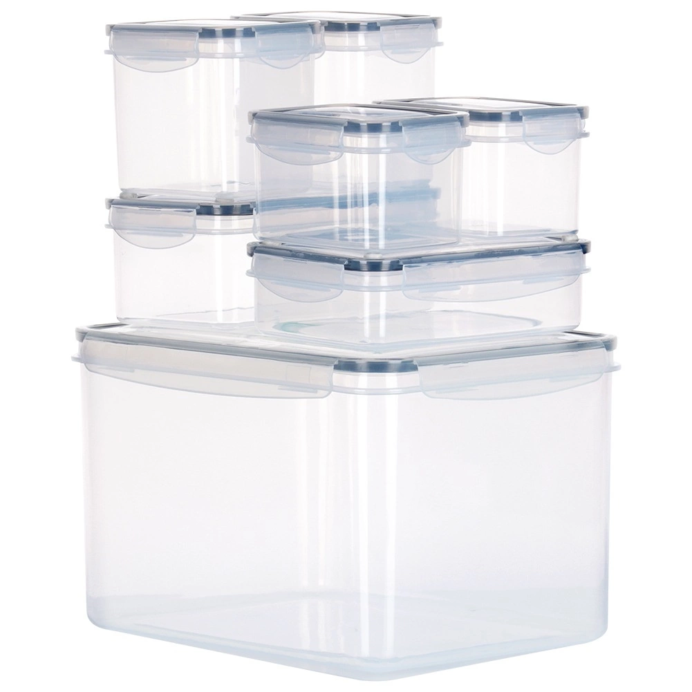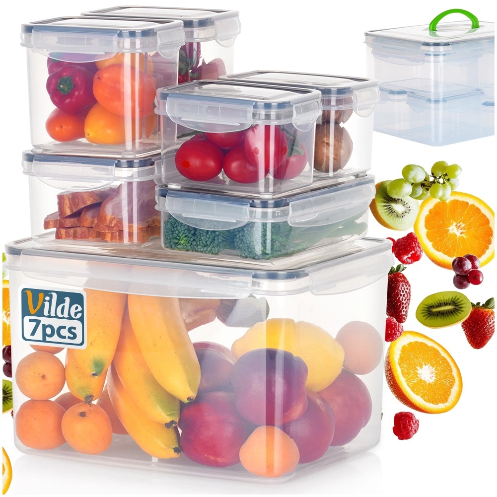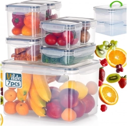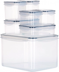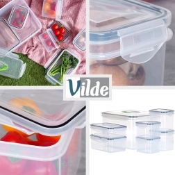 Tato univerzální sada zahrnuje pět velikostí pro ukládání surovin, jídel i svačin. Transparentní provedení umožní rychlou kontrolu obsahu bez otevírání a čtyři boční klipy se silikonovým těsněním zajistí spolehlivou těsnost při skladování i přenášení.