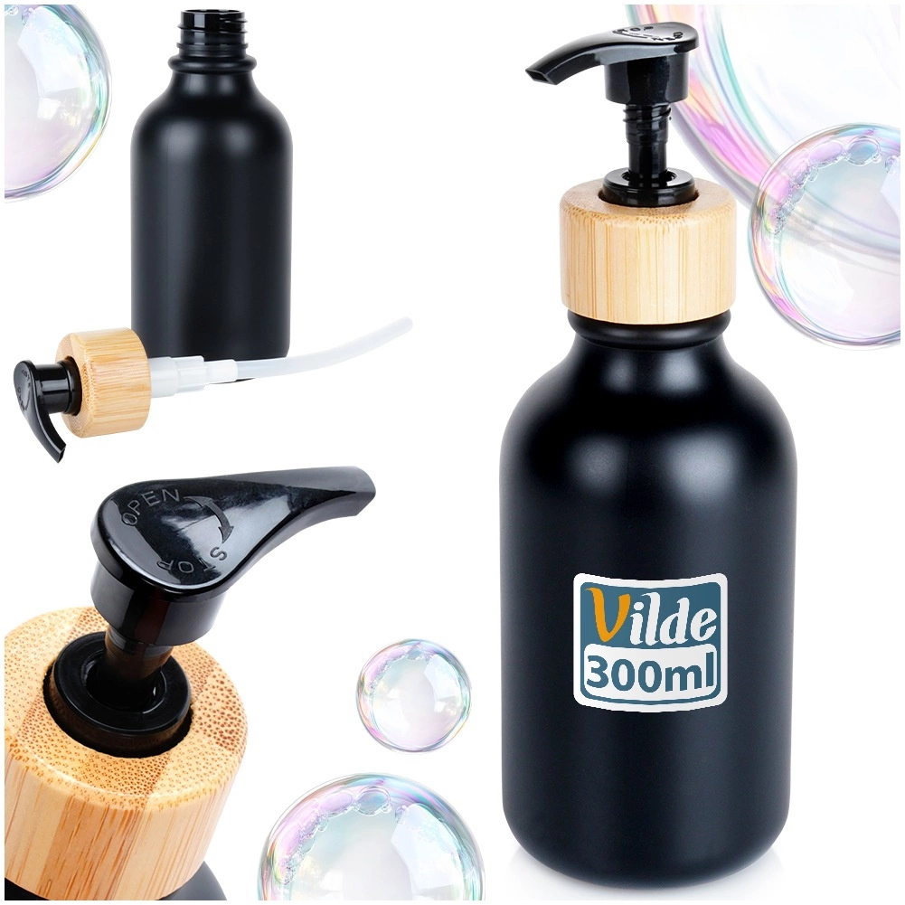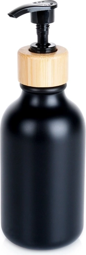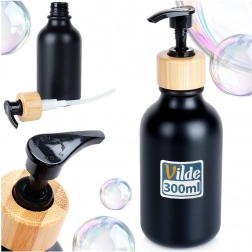 Elegantní dávkovač na mýdlo nebo prostředek na nádobí s objemem 300 ml v matně černém provedení a bambusovým akcentem. Nabízí moderní design, odolné a lehké provedení, pohodlné doplňování a uzamykatelnou pumpičku pro bezpečný transport. Skvěle se hodí do koupelny i kuchyně a pomáhá udržet pořádek i styl.
