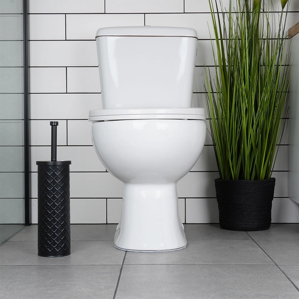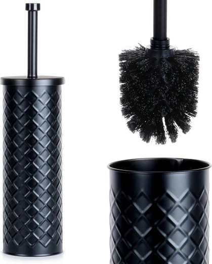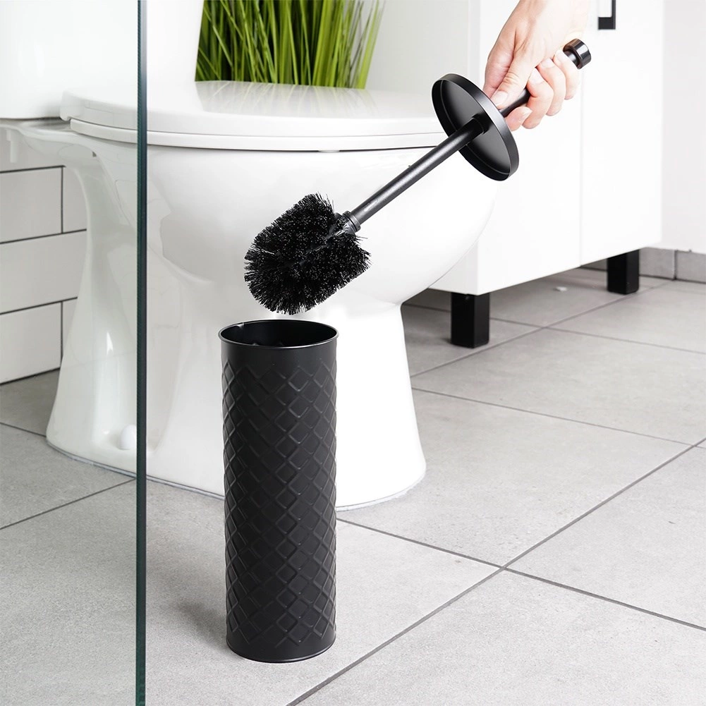 Stylový a praktický set pro čistotu vaší toalety. Kovový kontejner s moderní diamantovou texturou ukrývá kartáč s hustým černým vláknem, které účinně odstraní nečistoty i v ohybech mísy. Integrovaný odkapávač udržuje kartáč v suchu a stojan čistý.