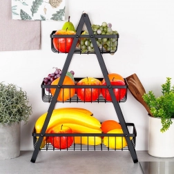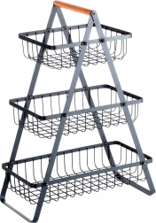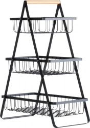 Tento víceúčelový tříúrovňový organizér je ideální pro kuchyň i jídelnu. Stabilní kovová konstrukce v industriálním stylu loft a dřevěné madlo zajišťují odolnost a pohodlné přenášení. Tři koše různých velikostí umožňují přehledné uložení ovoce, zeleniny i drobností každodenní potřeby.