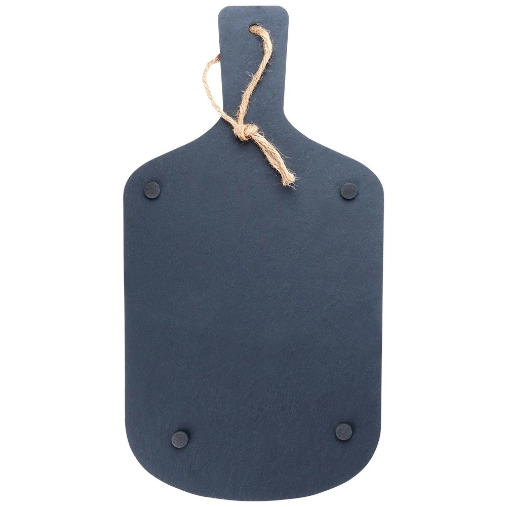 Stylové prkénko z přírodní břidlice pozvedne prezentaci vašich dobrot na novou úroveň. Díky rukojeti se pohodlně přenáší a otvor se šňůrkou umožní snadné zavěšení. Přirozeně texturovaný kamenný povrch s zabroušenými hranami působí moderně a nadčasově.