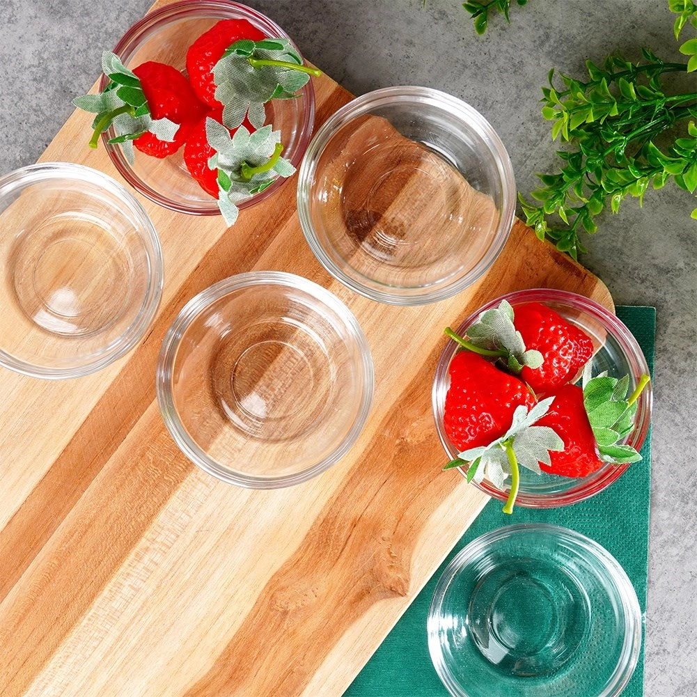 Elegantní sada šesti skleněných mističek o objemu 80 ml a průměru 7,5 cm je ideální na dezerty, dip, omáčky i předkrmy. Odolné čiré sklo, klasický design, stohovatelná úspora místa a snadná údržba v myčce z nich dělají praktický doplněk do každé kuchyně i gastro provozu.
