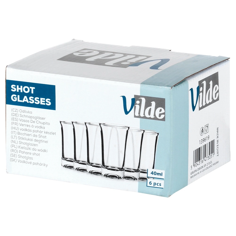 Elegantní sada šesti panákových skleniček o objemu 40 ml z kvalitního, silného skla s pevně vyztuženým dnem. Ideální na vodku, likéry a nalévky, skvělé také na shoty či mini dezerty. Vhodné do myčky nádobí a díky nadčasovému designu zapadnou do každé tabule.
