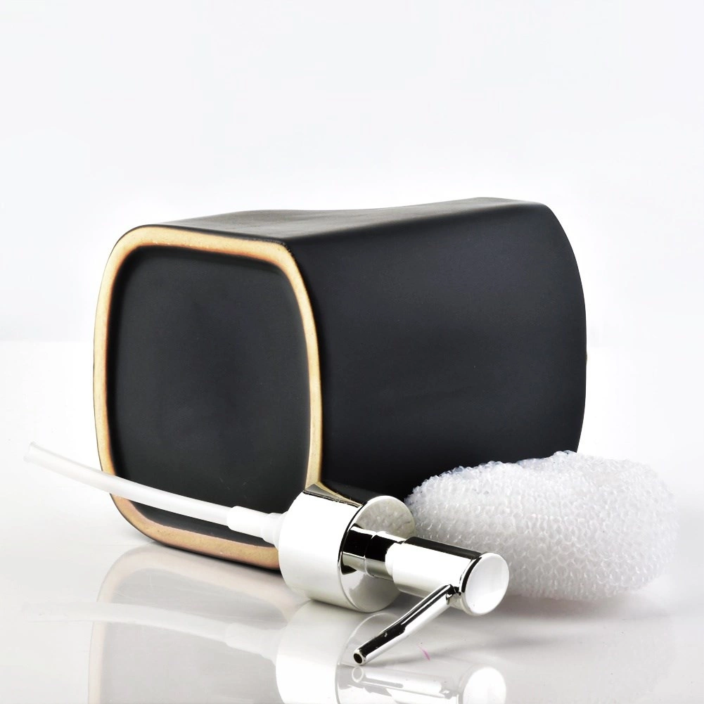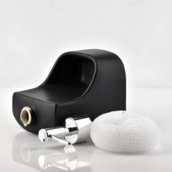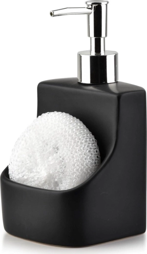 Stylový dávkovač kombinuje nádobku na tekutý prostředek s integrovaným úložným prostorem na houbičku či hadřík. Díky kompaktním rozměrům 9,5 × 9,5 × 19 cm se skvěle hodí ke dřezu a pomáhá udržet pracovní plochu přehlednou. Matná černá keramika působí elegantně a hodí se do moderních, klasických i industriálních interiérů.