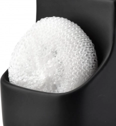 Plnění je maximálně jednoduché – stačí odšroubovat pumpičku a dolít mycí prostředek nebo tekuté mýdlo. Kovově zbarvená pumpa zajišťuje plynulé dávkování. Praktická kapsa udrží houbičku po ruce a umožní její rychlé osychání. Součástí balení je houbička na drhnutí, takže můžete začít používat ihned.