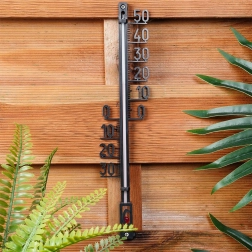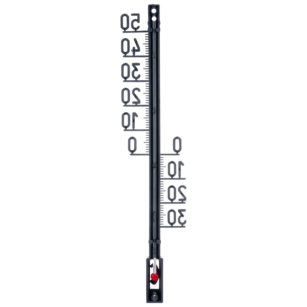 Univerzální nástěnný teploměr pro měření teploty doma i venku. Nabízí čitelnou stupnici -30 až +50 °C, odolné plastové provedení v černé barvě a snadné zavěšení na zeď či plot. Ideální na balkon, terasu a zahradu, stejně jako do interiéru.