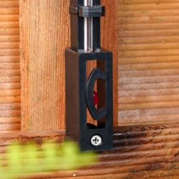 Integrovaný otvor umožňuje rychlé zavěšení na zeď, plot či dřevěný sloupek bez složitého montování.