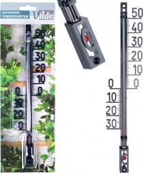 Praktický a stylový teploměr VILDE přesně změří teplotu okolního vzduchu v interiéru i exteriéru. Díky velkým číslicím a kontrastní stupnici je snadno čitelný i z větší vzdálenosti. Elegantní černý design skvěle zapadne na stěnu domu, plot, balkon nebo do předsíně.