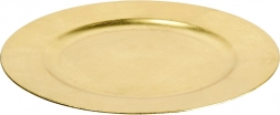Ozdobný podtácek v moderním zlatém provedení je ideální jako stylový talíř podklad i jako základna pro dekorativní aranžmá se svícemi či květinami. Klasický kulatý tvar s širokým okrajem krásně podtrhne vzhled jídelního servisu a zároveň ochrání ubrus před teplem a nečistotami.