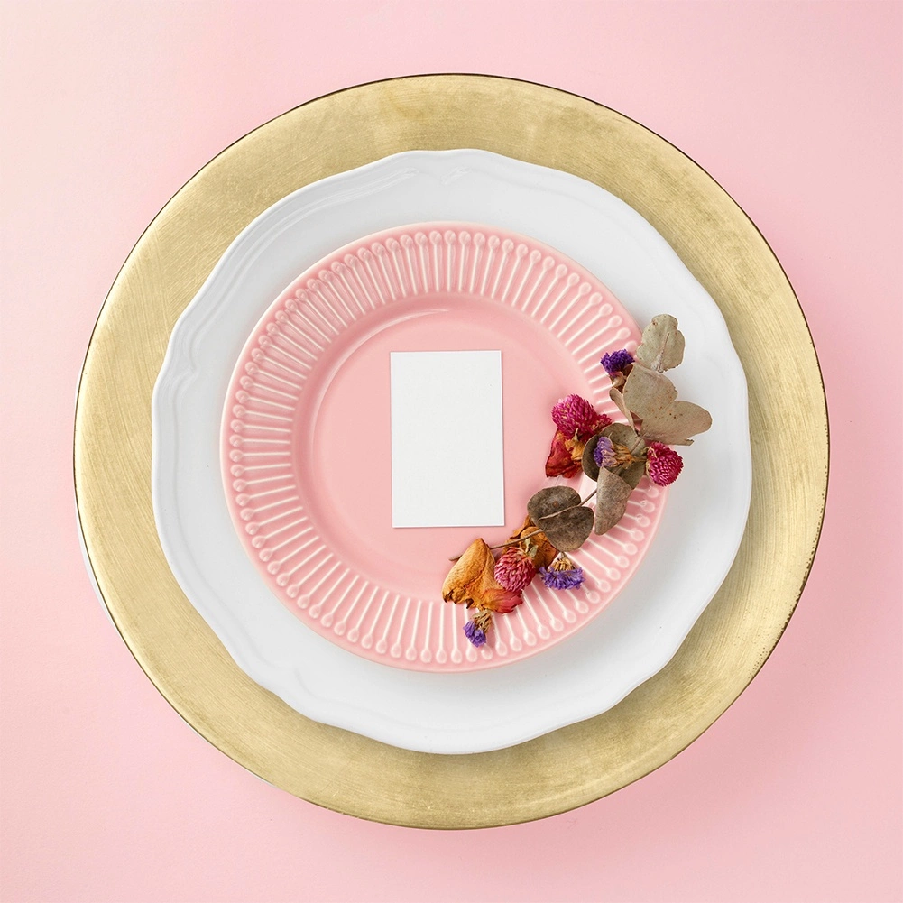 Široký okraj a zářivý povrch promění každé prostírání v slavnostní tabuli – ideální pro svatby, oslavy i svátky.