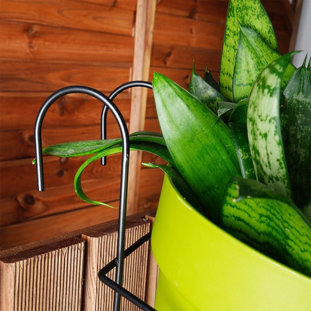 Tento kovový držák na květináč je ideální volbou pro každého, kdo chce efektivně využít prostor na balkoně nebo terase. Díky dvojitým hákům ho jednoduše zavěsíte na zábradlí o tloušťce až 5 cm, bez nutnosti nářadí. Otevřená drátěná konstrukce zajišťuje dobrou cirkulaci vzduchu kolem květináče a současně působí elegantně.
