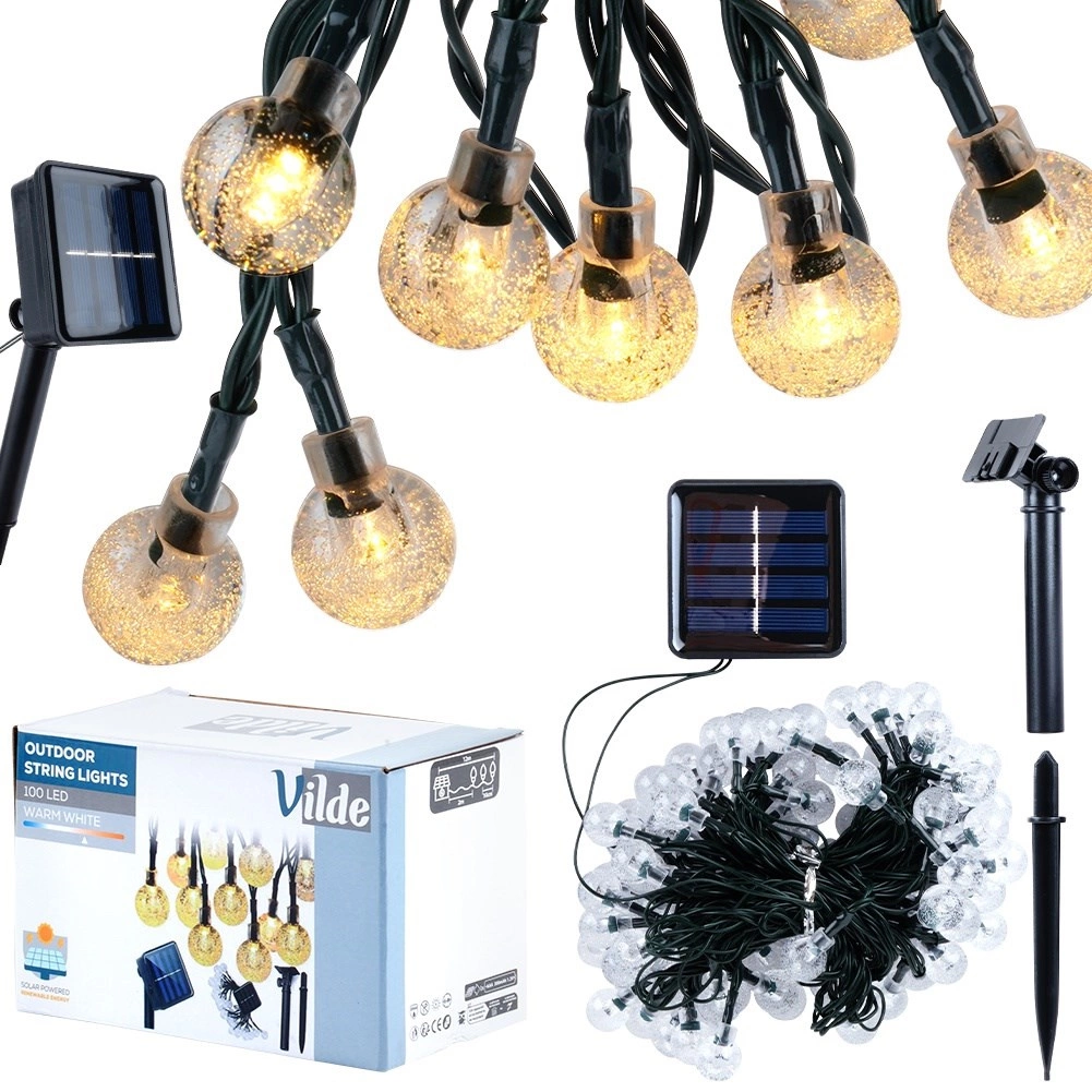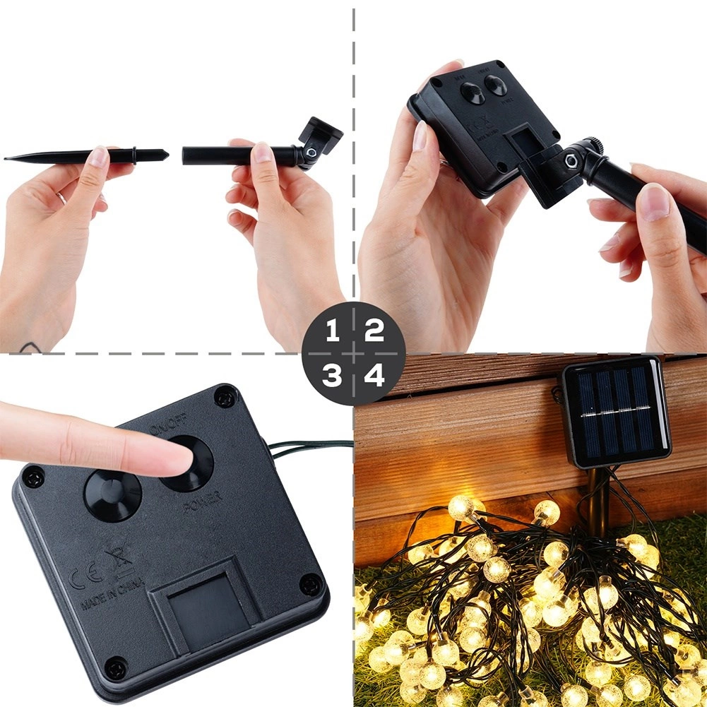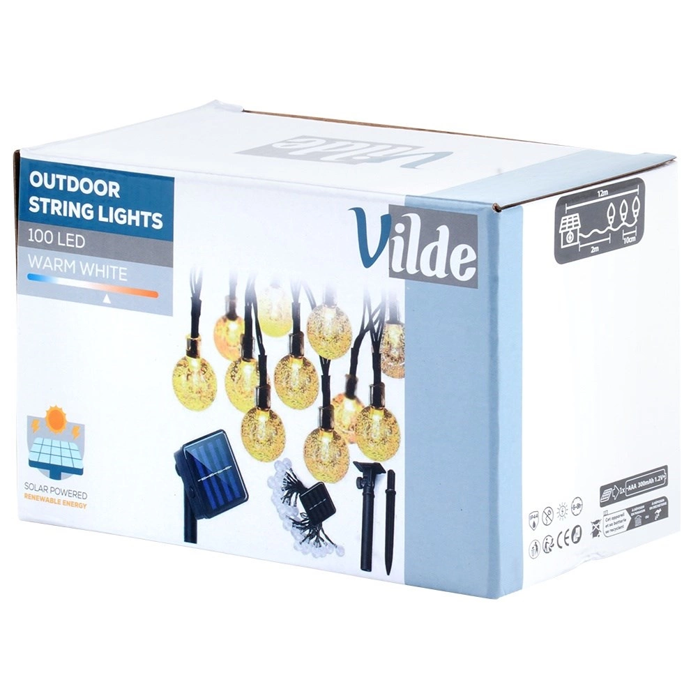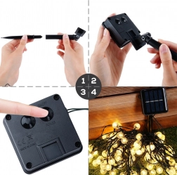 Solární girlanda s 100 LED žárovkami o průměru cca 1,5 cm rozsvítí každý venkovní prostor příjemným teplým světlem. Díky účinnému solárnímu panelu a integrovanému akumulátoru (1× AAA 1,2 V) se přes den nabíjí a po setmění se automaticky postará o dlouhotrvající a úsporné osvětlení. Ochrana IP44 zaručuje spolehlivost i při proměnlivém počasí.