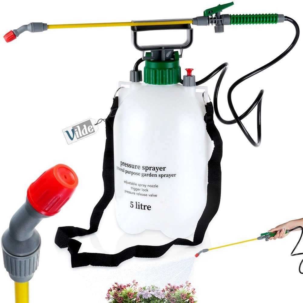 Praktický ruční tlakový postřikovač o objemu 5 l pro dům i zahradu. Nabízí regulovatelný proud, pohodlné nošení na rameni, funkci zámku spouště a snadné vytváření tlaku až do 3,2 bar pro efektivní zálivku, rosení i aplikaci přípravků na ochranu rostlin.