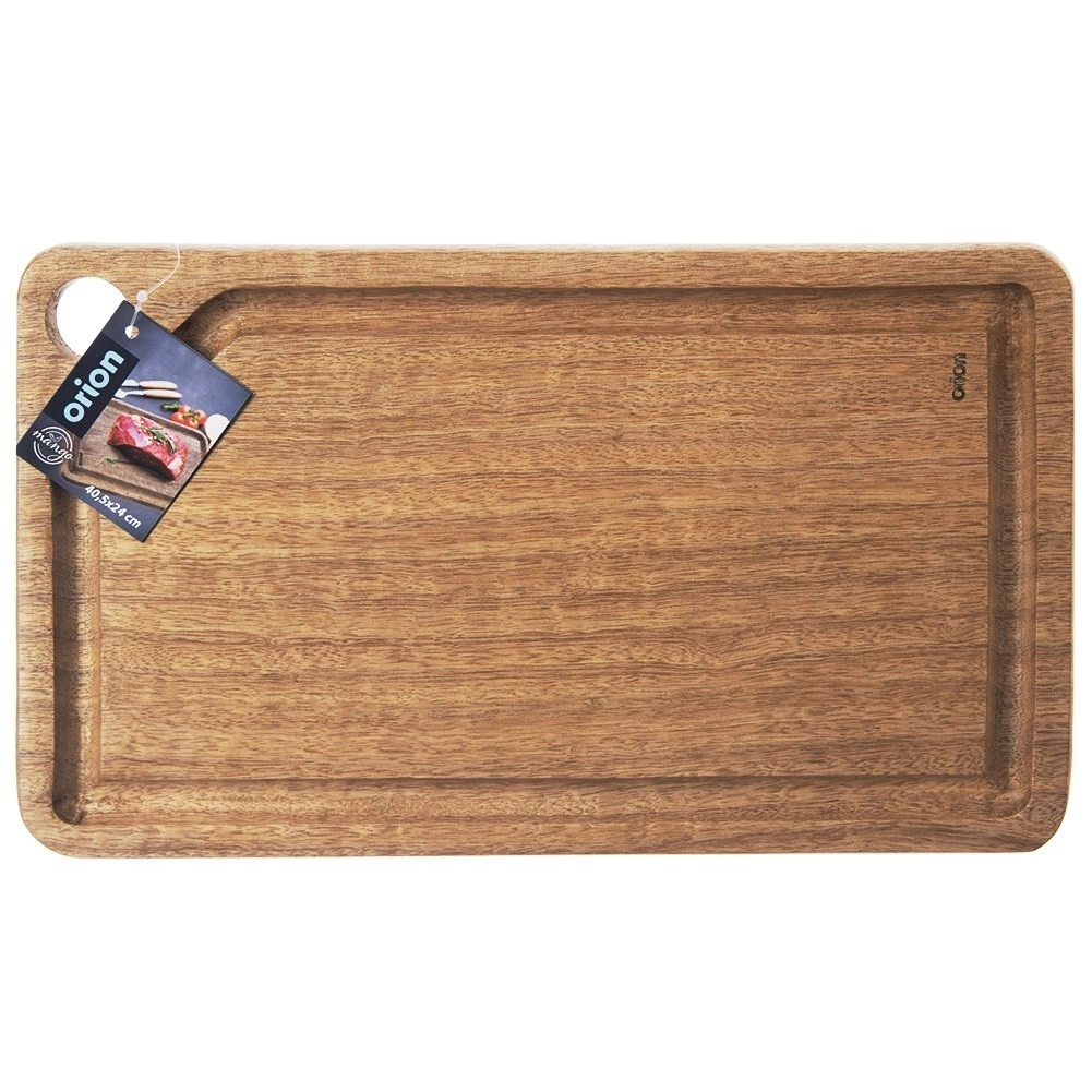 Elegantní dřevěné prkénko z mangového dřeva o rozměru 39,5 × 23 cm a tloušťce 2 cm je ideální pro každodenní krájení i servírování. Přírodní mangové dřevo je odolné vůči vlhkosti a deformacím, má rychlé schnutí a krásnou kresbu. Praktický hluboký žlábek po obvodu zachytí šťávy z masa, ovoce či zeleniny a otvor pro zavěšení usnadní skladování.