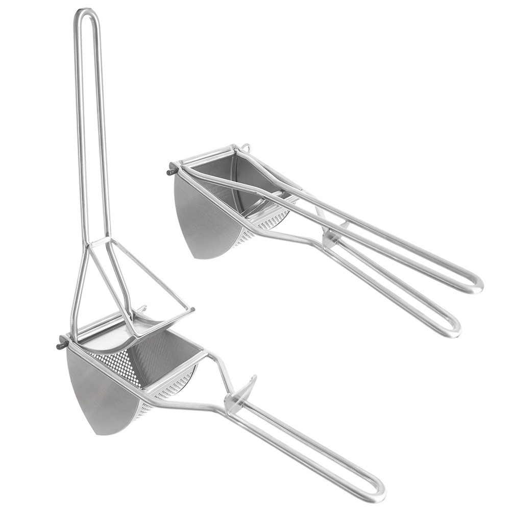 Robustní lis z nerezové oceli v elegantním stříbrném provedení je nepostradatelným pomocníkem v každé kuchyni. Vložíte uvařené brambory, stisknete rukojeti a získáte jemné pyré během chvilky. Stejně spolehlivě si poradí s vařenou zeleninou či měkkým ovocem pro dětské příkrmy.