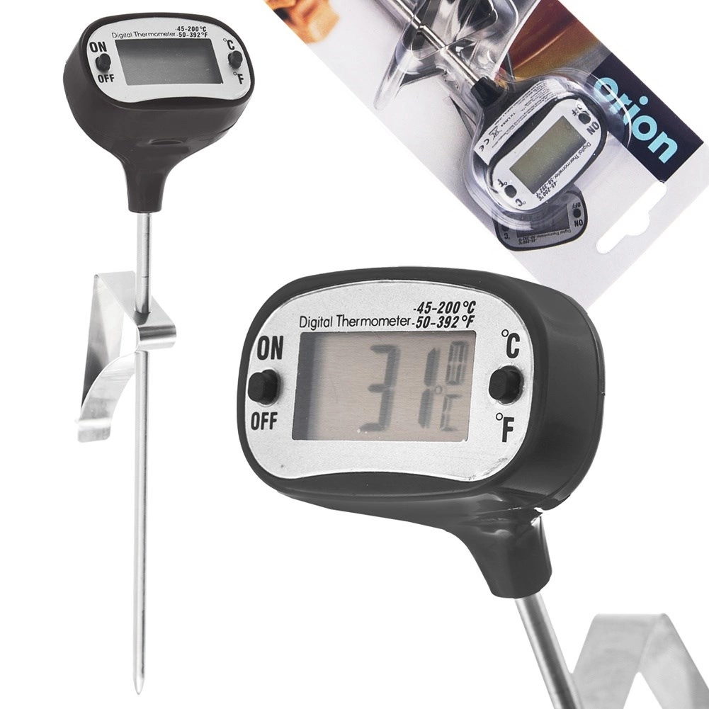 Digitální vpichovací teploměr ORION je spolehlivý pomocník pro každou kuchyni. Díky nerezové sondě přesně změří vnitřní teplotu masa, polévek, mléka či sirupů. Jasný LCD displej a tlačítka ON/OFF a °C/°F umožní pohodlné ovládání, zatímco kovový klips udrží sondu stabilně na okraji hrnce.