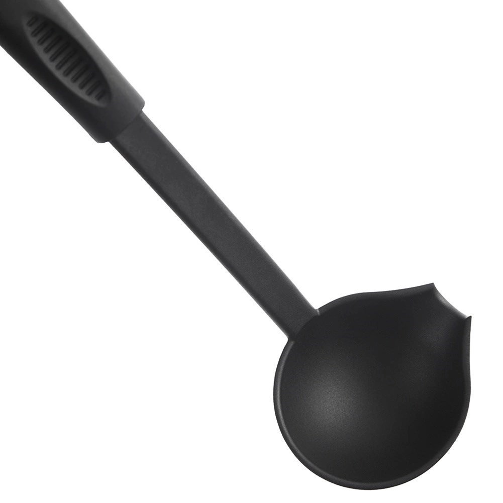 Naběračka z řady BLACKLINE je skvělým pomocníkem pro každodenní vaření a servírování. Lehká konstrukce z kvalitního termoplastu je šetrná k nádobí, nepoškrábe nepřilnavé povrchy a díky ergonomické rukojeti nabízí jistý úchop.