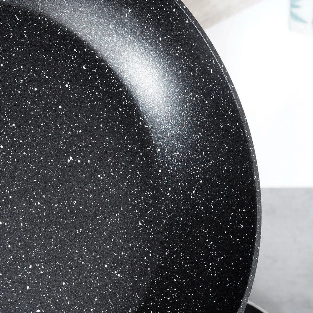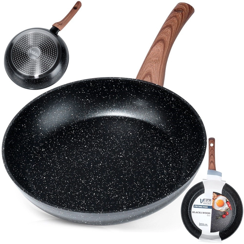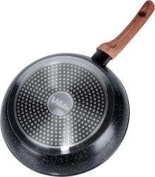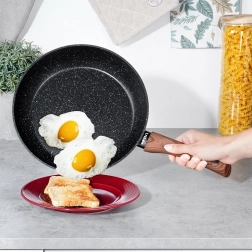 Oblíbená pánev v moderním spojení černé a dřeva se stane praktickým pomocníkem pro smažení i dušení. Odolné hliníkové tělo s kvalitní granitovou nepřilnavou vrstvou zaručuje snadné uvolnění pokrmů a jednoduché čištění. Ideální na maso, zeleninu, vejce i rychlé ohřátí jídel.
