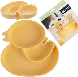 Praktický dětský talířek ve tvaru kachničky z kvalitního silikonu se třemi přihrádkami a silnou přísavkou pro stabilitu. Ideální pro první samostatné stolování, podává teplá i studená jídla, je odolný vůči teplotám, vhodný do myčky i mikrovlnky a udržuje jídlo oddělené v jednotlivých sekcích.