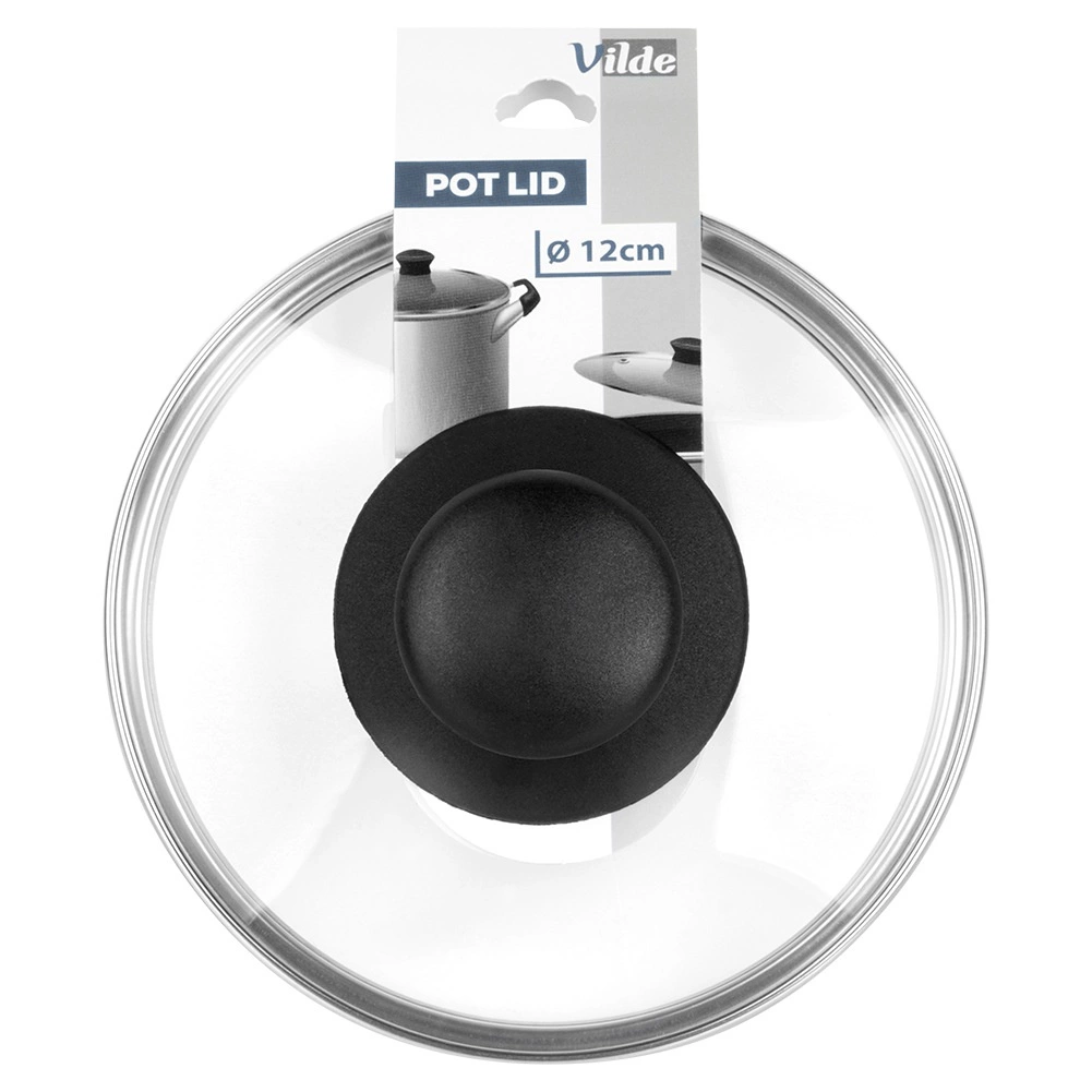 Tato univerzální skleněná poklice přesně padne na hrnce, pánve a rendlíky o průměru 12 cm. Průhledné žáruvzdorné sklo s nerezovým lemem zaručuje odolnost a snadnou údržbu, zatímco ergonomické madlo poskytuje bezpečný úchop. Díky mírně vypouklému tvaru napomáhá lepší cirkulaci horkého vzduchu.