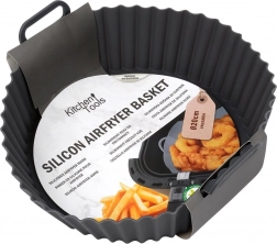 S tímto šedým silikonovým košem udržíte svou horkovzdušnou fritézu bez námahy čistou. Vložku jednoduše vložíte do koše fritézy, připravíte hranolky, kuře či zeleninu a po dovaření ji vyjmete za praktické úchyty. Nepřilnavý povrch usnadňuje servírování i mytí a zároveň brání připalování.