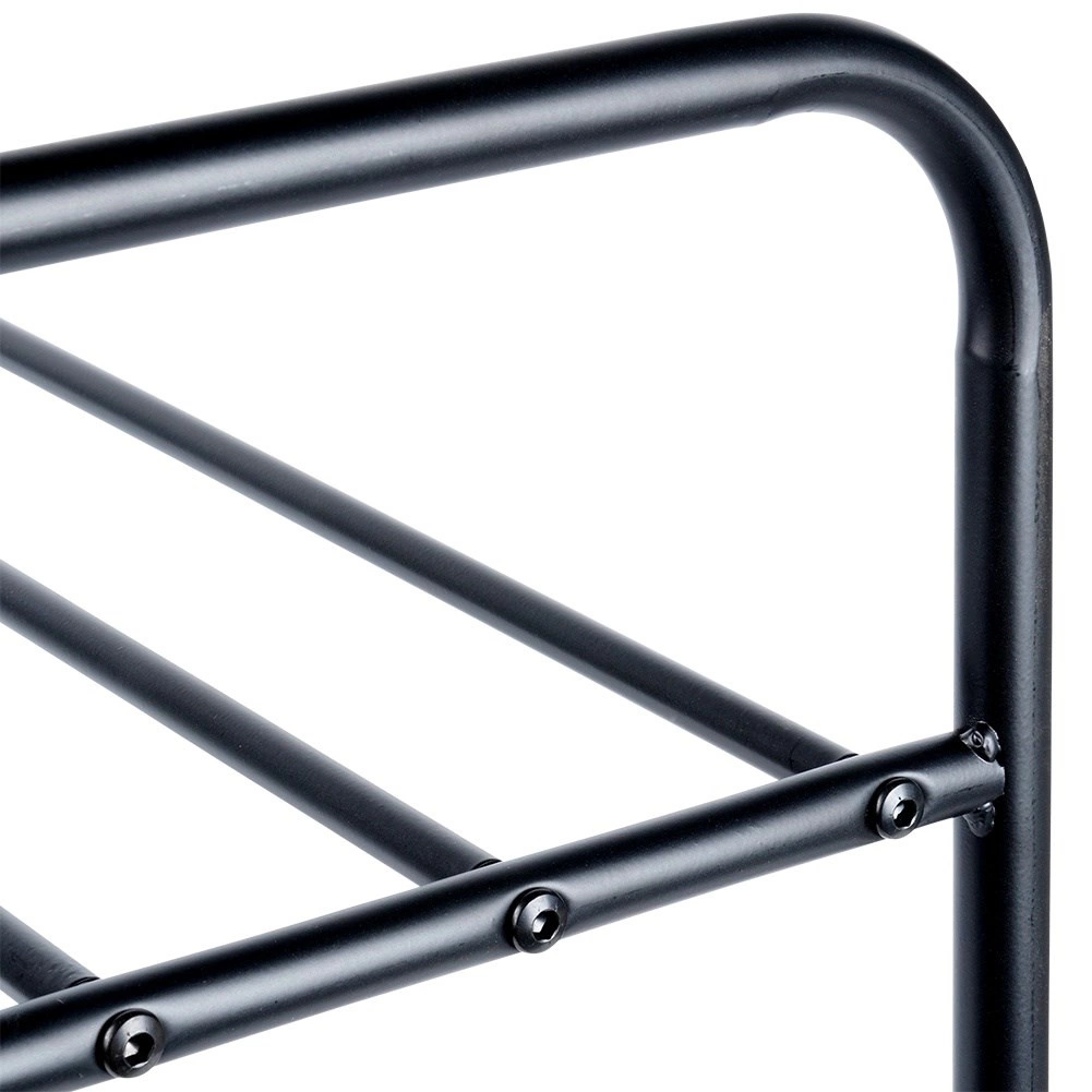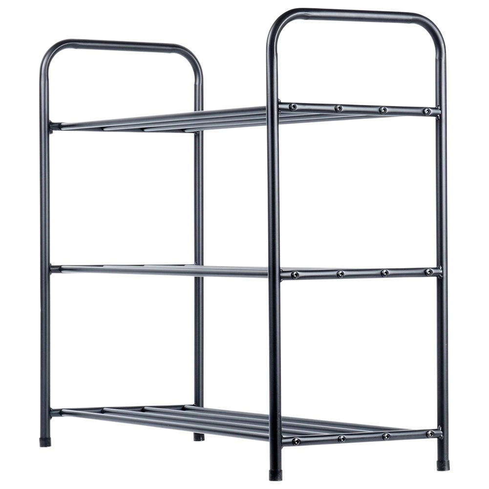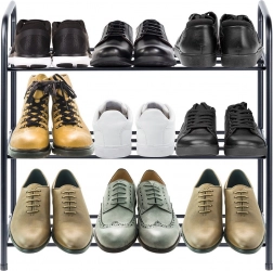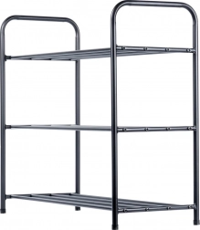 Tento třípatrový kovový botník zajistí pořádek a přehled ve vaší domácnosti. Otevřená konstrukce s trubkovými rošty umožňuje cirkulaci vzduchu a udržuje obuv větranou a rychle přístupnou. Robustní rám z práškově lakovaného kovu v černé matné barvě je stabilní a odolný, přesto lehký pro snadné přemístění.