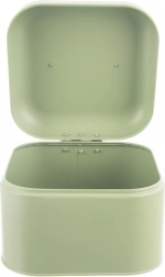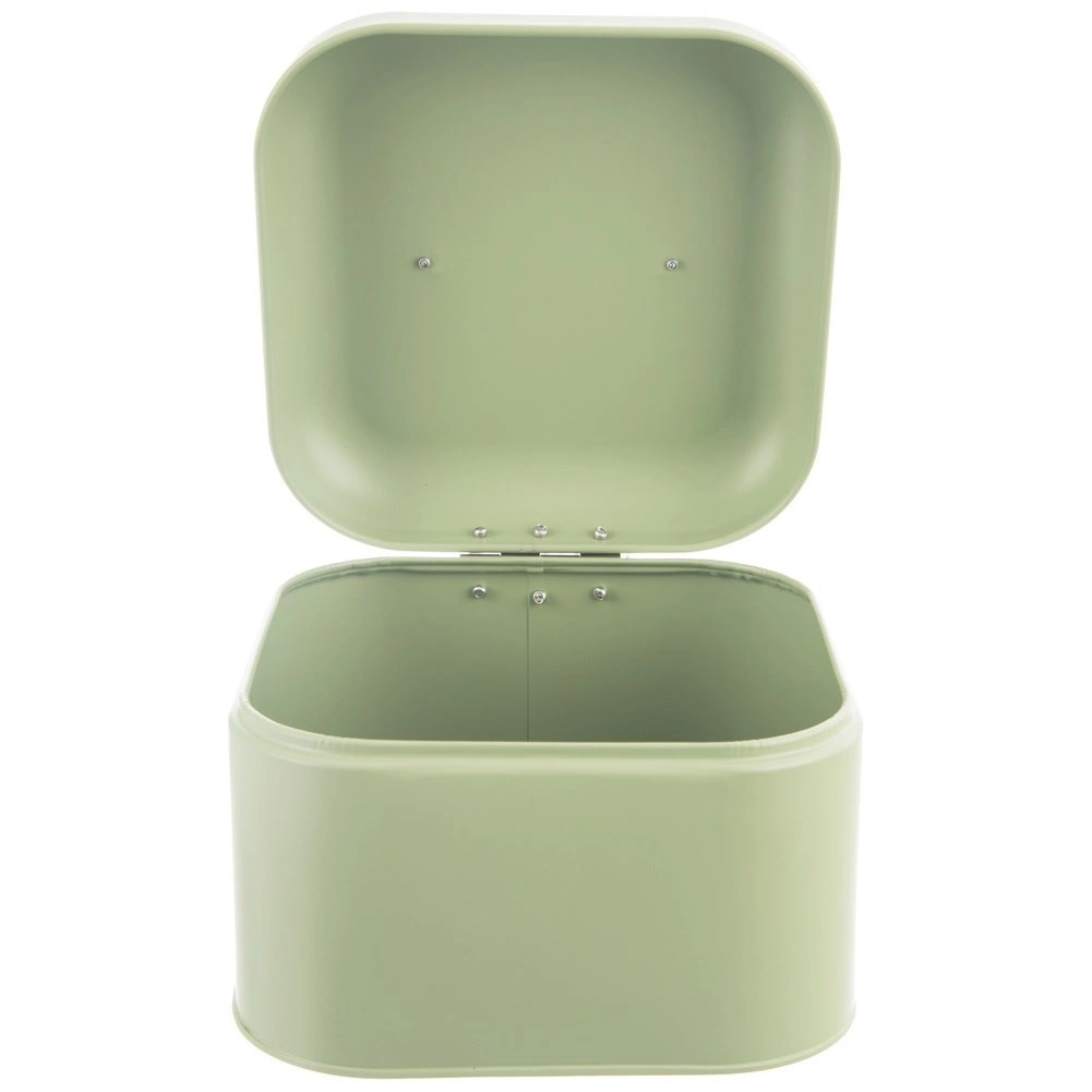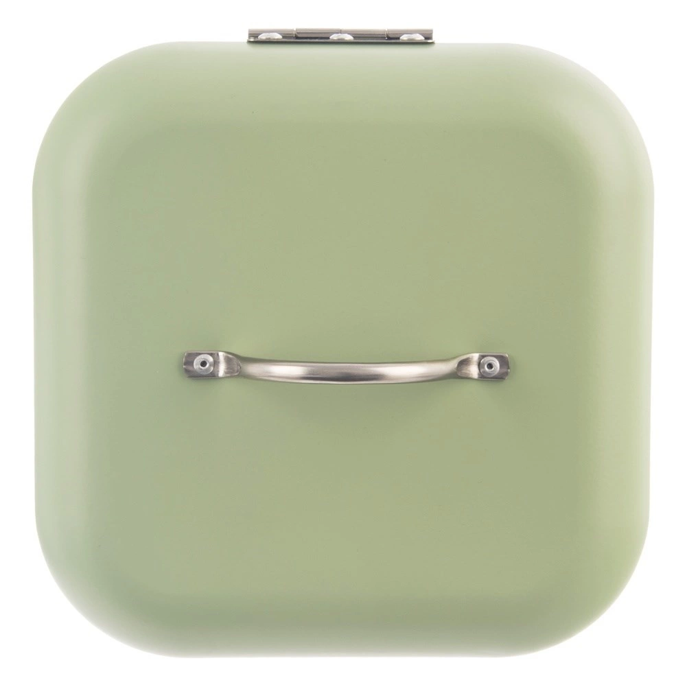 Elegantní chlebník z kolekce GREENISH je skvělým řešením pro uchování čerstvosti pečiva. Uzavřená kovová nádoba omezuje přístup vzduchu, čímž zpomaluje vysychání a udržuje skvělé aroma i chuť. Pastelově zelené provedení s nerezovým madlem působí moderně a snadno se kombinuje s ostatními doplňky v kuchyni.